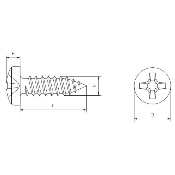 Pan head with phillips drive stainless steel screws , sharp point with full tapping threads for secure metal or wooden or plastic objects . stainless steel self tapping screws with self tapping threads that can cut material when screws are being installed .